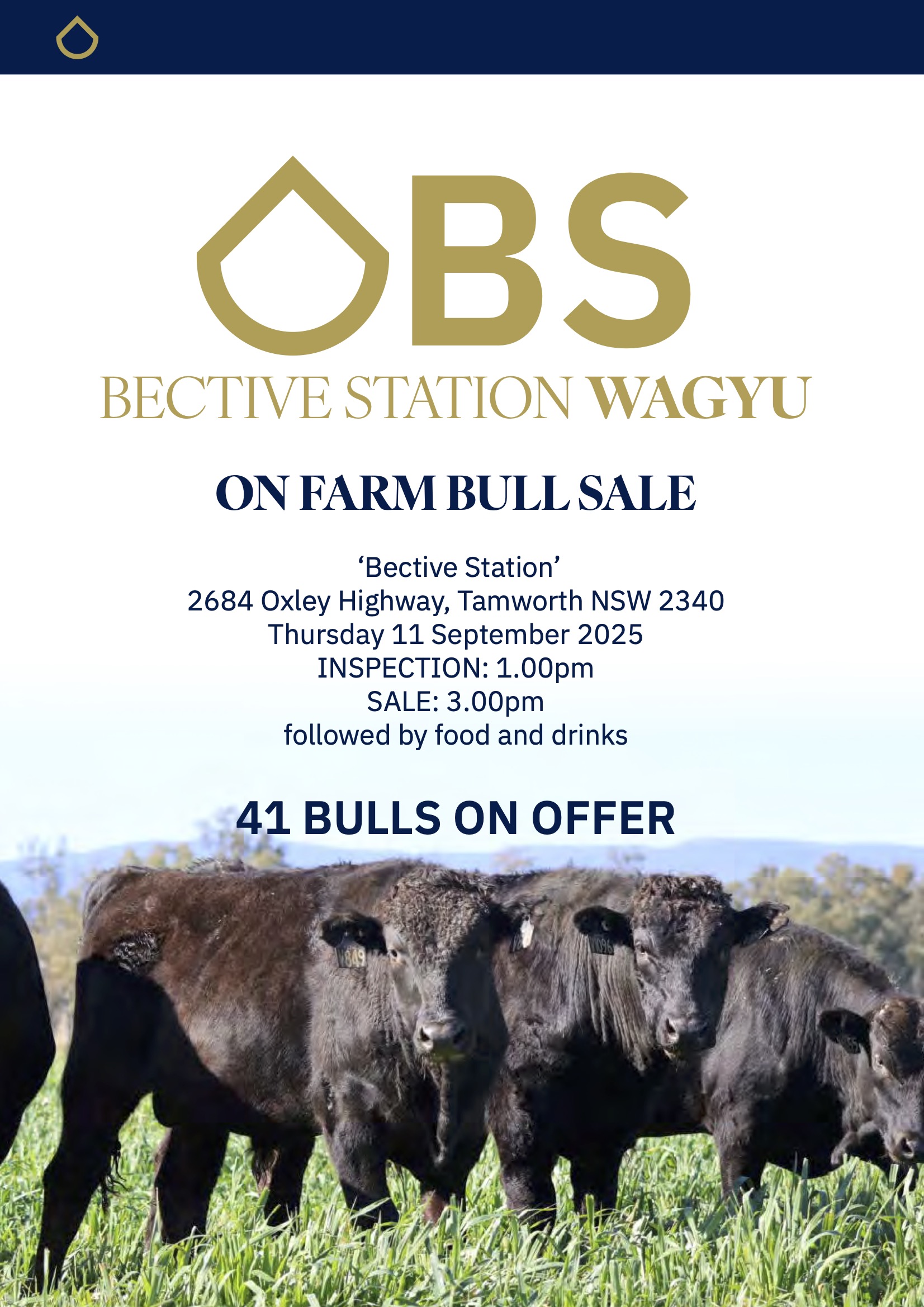 Join us at Bective Station for our upcoming bull sale. We are proud to offer 41 outstanding Fullblood Wagyu bulls, the very best of our 2024 drop. Carefully selected from a cohort of 1,200 calves, these bulls represent the top 5% of our program, showcasing the strength of our genetics, performance, and breeding direction.
