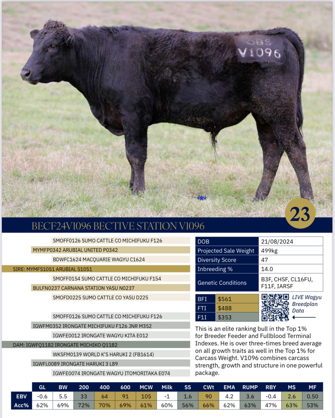 These 41 elite bulls, all rank in the Top 20% for both BFI and F1 Terminal Index, with standout marbling and carcass traits.